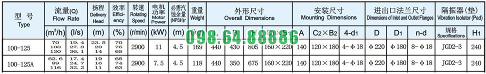 Máy bơm ly tâm, bơm lùa, bơm booster inline, bơm tăng áp ISG100-125, IRG100-125 11kw, 100m3, 20m