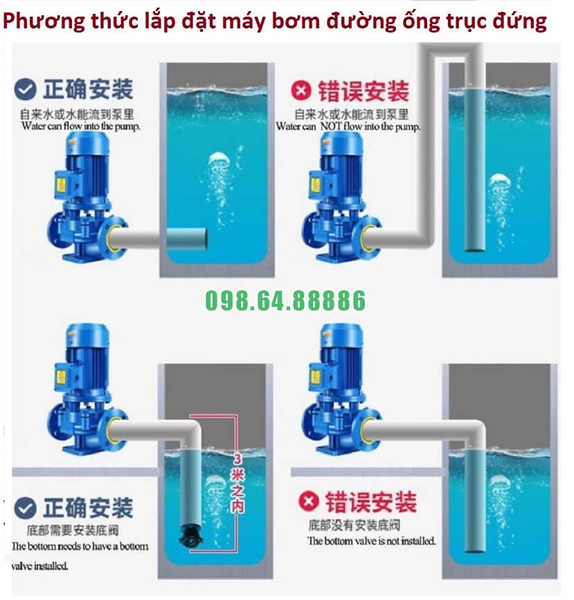 Máy bơm tăng áp, bơm lùa, bơm inline, bơm trục đứng ISG65-250B, IRG65-250B 11kw, 21.6m3, 60m